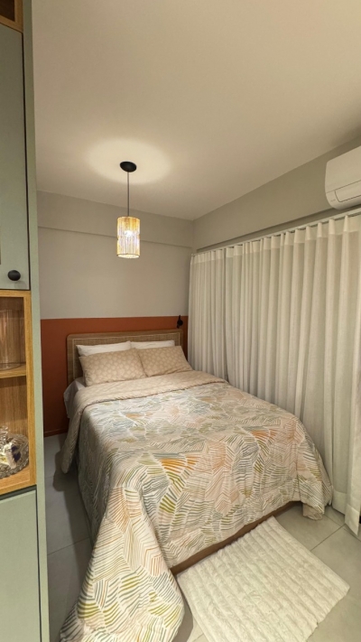 Excelente apartamento de 2 quartos, muito bem distribuído em 40m², projeto de iluminação e teto com rebaixamento em gesso, pisos em porcelanato, área de serviço e vaga de garagem rotativa.