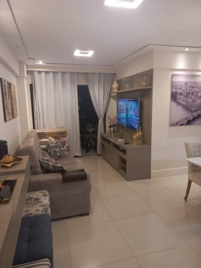 Excelente apartamento de 2 quartos, muito bem distribuído em 50m², varanda integrada com a sala, pisos em porcelanato, área de serviço com banheiro e 1 vaga de garagem.