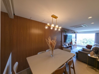 Excelente apartamento com planta original de 3/4 revertido para 2/4 sendo uma suíte, muito bem distribuído em 110m², Nascente, armários planejados em todos os ambientes, projeto de iluminação, todo no porcelanato, banheiro social, dependência completa, despensa com armários, área de serviço e duas vagas de garagem soltas.